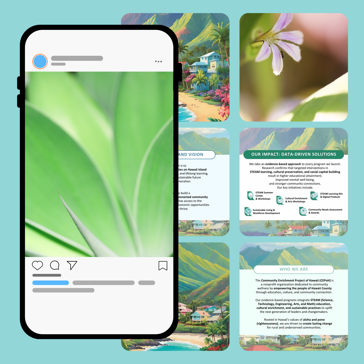 The Community Enrichment Project of Hawaii is a nonprofit organization based on Hawaii Island that integrates education in STEAM, culture, business, and sustainability.